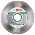 It is compatible with angle grinders. The Standard for Ceramic Diamond Cutting Disc provides reliable cuts in tiles. Its continuous cutting rim achieves accurate results in all sorts of tiles. Additionally, the disc's high-quality standards are ensured by the Bosch diamond competence centre in Switzerland. Use this disc for cutting ceramics, porcelain and fine stoneware.