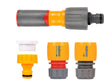 1 x Soft Touch AquaStop Connector. With an internal valve which stops the water flow when an accessory (e.g. a spray gun) is disconnected, so avoiding the need to return to the tap to turn the water off when you are switching between accessories and wasting less water when changing equipment. With soft touch for added grip and comfort.