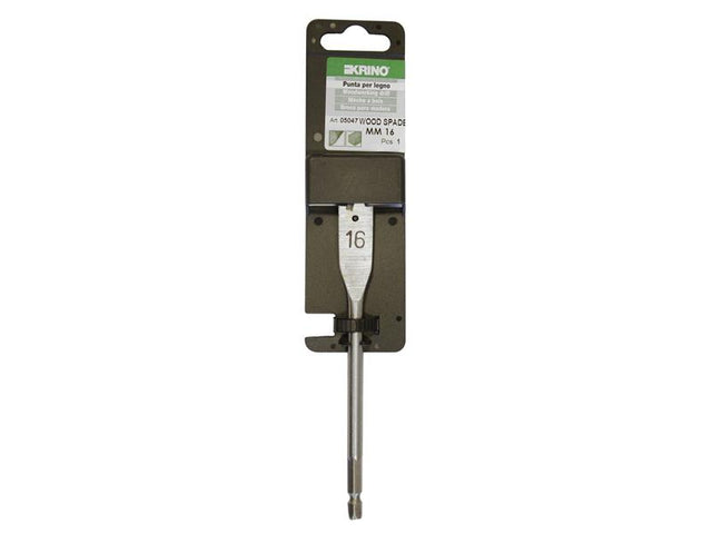 1 x Krino Flat Wood Drill Bit 16 x 150mm supplied in retail packaging with a hanging hook.