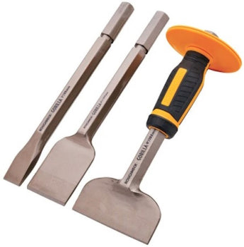 The New, Exclusive XMS 3 Piece Gorilla Bolster Set, from Roughneck®, has an interchangeable handle in a tool roll.