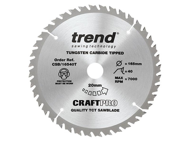 Trend CSB/16540T CraftPro Thin Kerf Saw Blade 165 x 20mm x 40T