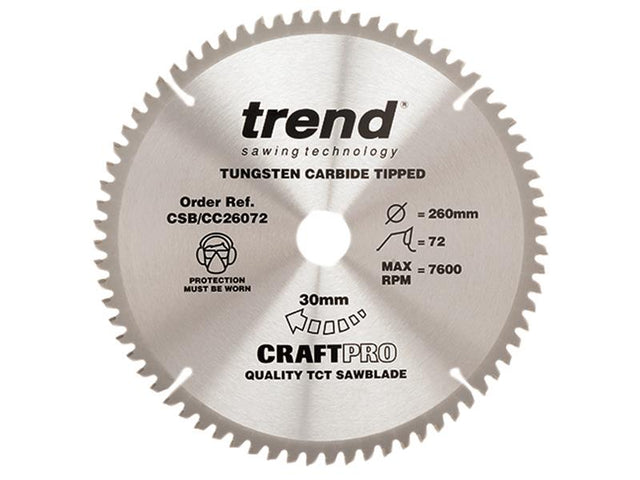 Trend CSB/CC26072 CraftPro Mitre Saw Blade 260 x 30mm x 72T