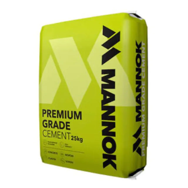 MANNOK 25KG Cement comes in a durable plastic bag designed for superior moisture protection. This professional-grade cement delivers consistent workability and excellent strength development for various construction applications. Manufactured to meet industry standards, it ensures reliable performance in all weather conditions.