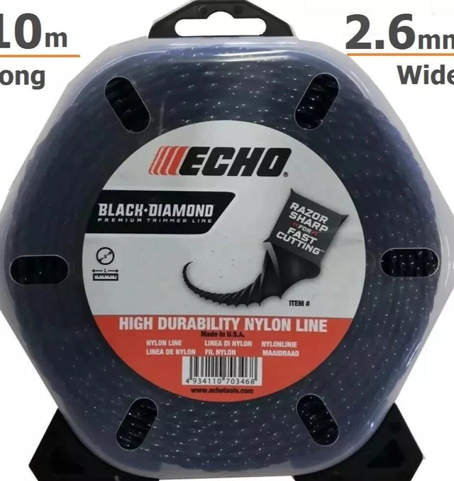 Get a professional cut with the ECHO Black Diamond trimmer line! Made from premium materials, this 2.67mm x 10m trimmer line is durable and long-lasting. Its diamond-shaped edges provide a clean and precise cut, making it perfect for edging and trimming tasks. Experience excellent performance and efficiency with the ECHO Black Diamond trimmer line.