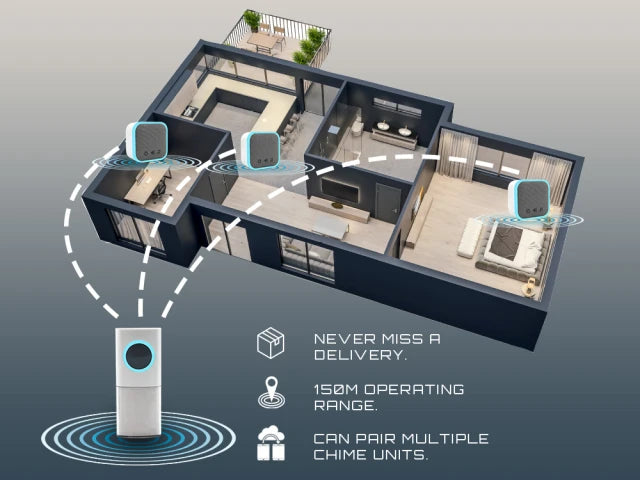 It has three operating modes - chime sound only, LED alert light only and both together, you can set your Door Chime to operate exactly as you want it to. With 30 different chime melodies to choose from, 90dB(A) sound output with volume control and a flashing blue chime alert, you will always know when somebody is at your door.