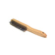 This wooden handle wire brush offers durable construction for effective cleaning and surface preparation. Its sturdy wire bristles efficiently remove rust, paint, and debris, while the ergonomic wooden handle provides a comfortable grip for precise control during use. Ideal for professional and DIY applications, this brush ensures reliable performance and long-lasting use.