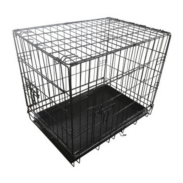 This easy to assemble durable dog crate is manufactured from heavy duty metal with powder coated wires to help keep it free from rust & it won’t be easily damaged. The open wire construction allows air to circulatebetter so your pet stays cool & it gives them their own space for sleeping, relaxing & training. It can be easilyaccessed either by the front or side door & both come with secure, escape-proof locks. This space savingdesign can be quickly folded & stored away when not in use.It is ideal for small sized breeds such as JackRussell Terrier, Pug & Dachshund etc.Approx Open Size: L61 x W42 x H48.5cm Dog Weight: Small (up to 30lbs/13.61kgs)(L24” x W16½” x H19”) Net Weight: 4.3kgs