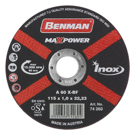BENMAN CUTTING DISK, FOR INOX, MAXPOWER 115X1.0MM