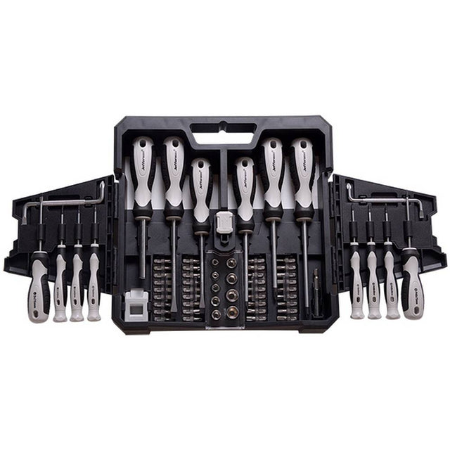 35x CR-V Bits: 3mm, 4mm, 4mm, 5mm, 5mm, 6mm, 6mm , (6.35 x 25mm), PH0, PH1, PH1, PH2, PH2, PH3, PH3, PZ0, PZ1, PZ1, PZ2, PZ2, PZ3, T10, T15, T20, T25, T27, T30, T35, H3, H4, H5, H6, S0, S1, S2, S31x ADP (25mm)1x Pozi: PZ2x125mm2x Offset: PH2-6mm, PH1-5mmSet includes:3x Phillips: PH2x100mm, PH1x100mm, PH0x75mm 1x Bit Driver 9x Sockets: 4mm, 5mm, 6mm, 7mm, 8mm (1/4β), 9mm, 10mm, 11mm, 12mm Product features SKU JEFSDSET63 Gross Weight 1.65 kgs1x Magnetize & Demagnetizer Tool1x Magnetic Holder6x Precision: 2.0x50mm, 2.5x50mm, PH00x50mm, PH000x50mm, T6x50mm, T8x50mm3x Slotted: 6x125mm, 5x100mm, 3x75mm
