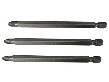 Faithfull Pozidriv S2 Power Screwdriver Bits PZ2 x 100mm (Pack 3)