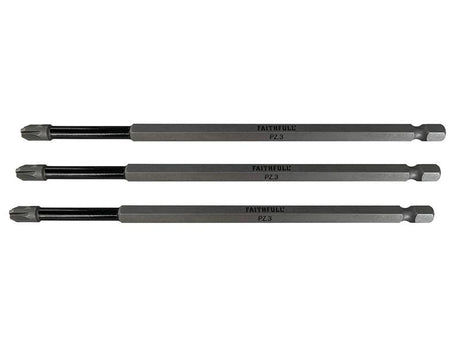 Faithfull Pozidriv S2 Power Screwdriver Bits PZ3 x 100mm (Pack 3)