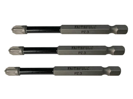 Faithfull Pozidriv Impact Screwdriver Bits PZ3 x 75mm (Pack 3)