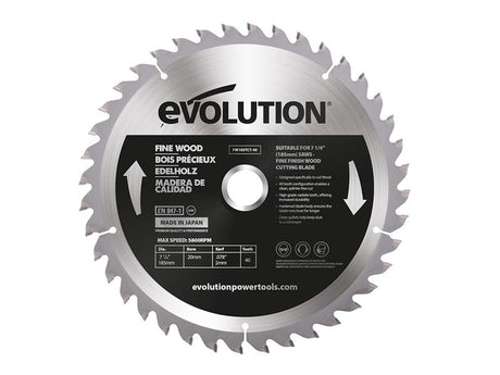 Evolution Fine Wood Mitre/Table Saw Blade 185 x 20mm x 40T