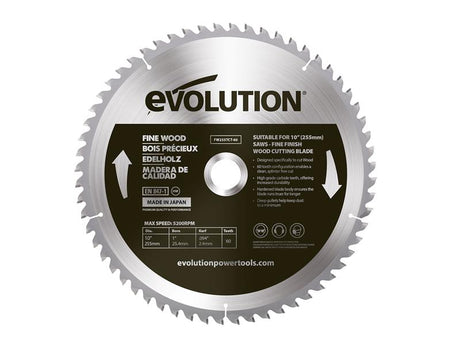 Evolution Fine Wood Mitre/Table Saw Blade 255 x 25.4mm x 60T