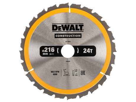 DEWALT Stationary Construction Circular Saw Blade 216 x 30mm x 24T ATB/Neg