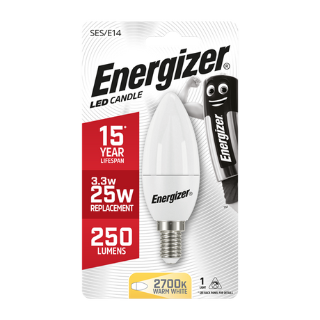 ENERGIZER LED 3.4W (25W) 250 LUMEN E14 OPAL CANDLE LAMP WARM WHITE