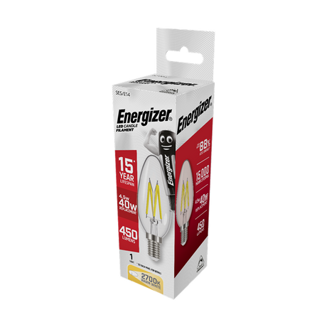ENERGISER 5W 40W E14 LED CANDLE FILAMENT WARM WHITE DIMMABLE 470 LUMENS
