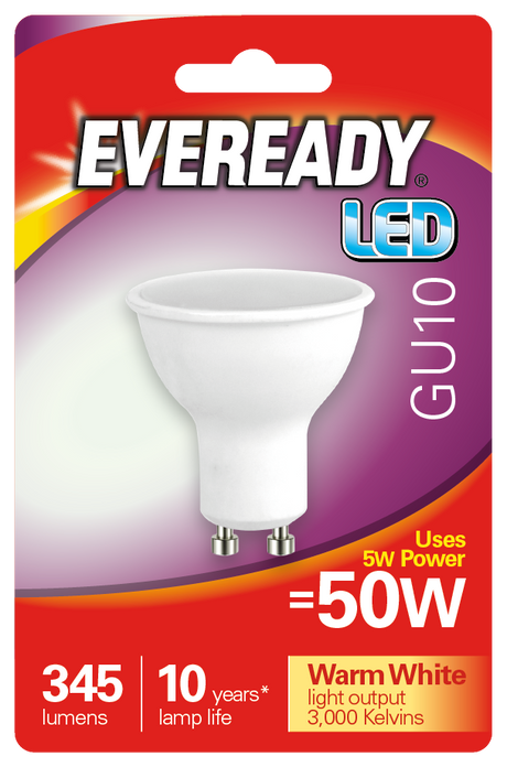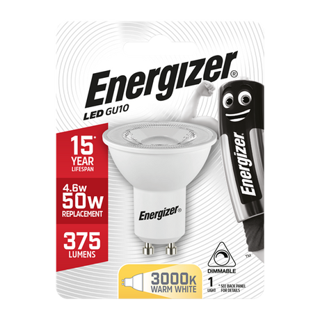 ENERGIZER 4 PACK LED 4.2W (50W) 345 LUMEN GU10 LAMP WARM WHITE