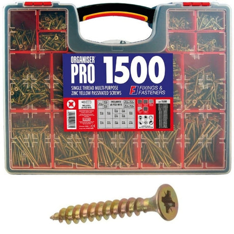 ForgeFix Organiser Pro Multi-Purpose Wood Screw Kit, 1200 Piece