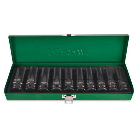 TOPTUL 10 PCE 1/2"DR 6PT DEEP IMPACT SOCKET SET