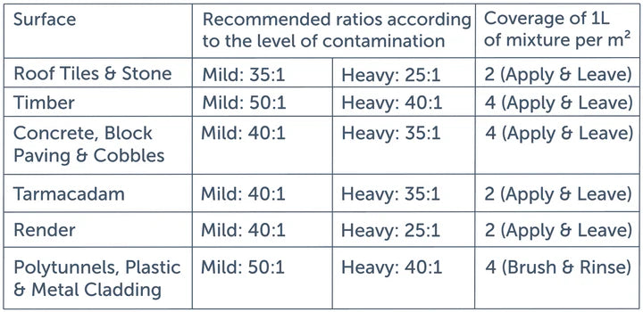 The active substance in Actiwash Pro Biocide, helps to remove algae mould and other single celled organisms from hard surfaces, by disruption of the cell membrane. Preventing photosynthesis and other physiological processes, leading to visible results in 12-24 hours.