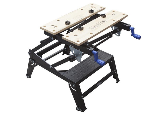 The Bahco Foldable Workbench has a large wooden work surface and can be adjusted to different heights according to need. Foldable for easy transport and handling.