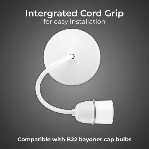 - This classic white pendant set has a 6"/150mm flex and 3"/85mm base, with a lampholder to fit B22 Bayonet cap light bulbs. the lampholder is pre-wired to the cable ready to be fitted to the ceiling rose. Designed with ease of installation in mind.