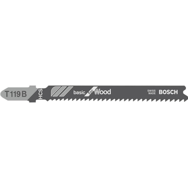 T 119 B Basic for Wood Jigsaw Blade makes straight cuts in wood Milled, wavy-set teeth are ideal for cuts without special requirements High carbon steel blade material is appropriate for cutting softwood and non-abrasive woodworking materials Fits all T-shank jigsaws.