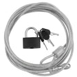 Ultra strong steel security cable. Includes padlock and 3 keys. 3mm x 300mm. Ideal for bikes, laptops and monitors.