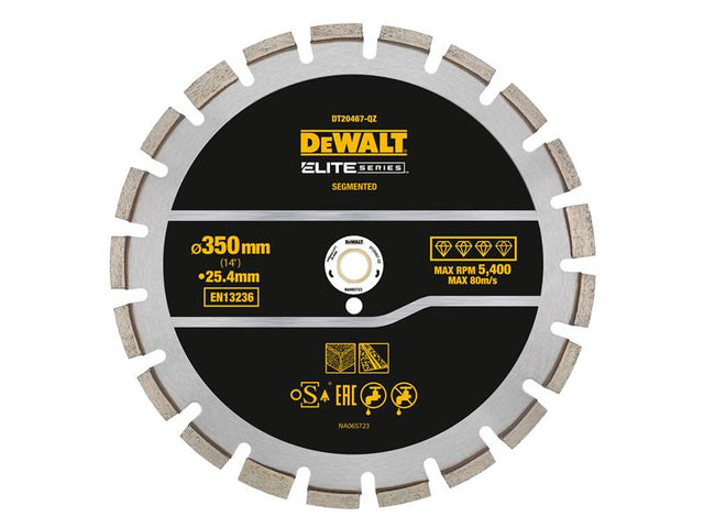 The DEWALT ELITE SERIES™ Asphalt Diamond Segmented Wheel 350 x 25.4mm.