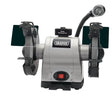 Heavy duty machine with work light, designed for use in the garage or workshop. One coarse and one fine grinding wheel, adjustable eye protection shields, spark deflectors, wheel guards and tool rests. Supplied with grinding wheel dresser and storage tray. Fitted with approved plug and cable. Display carton.