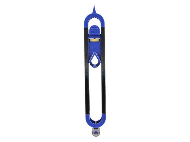 Features an adjustable pencil holder to offer a range of scribing distances. This can be locked and fixed after each adjustment to ensure accuracy. Use with your preferred marker. Ideal for use when profiling woodwork, flooring and worktops.