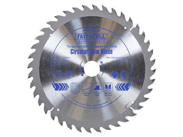 Faithfull TCT Cordless Trimsaw Blade 165 x 20mm x 40T POS