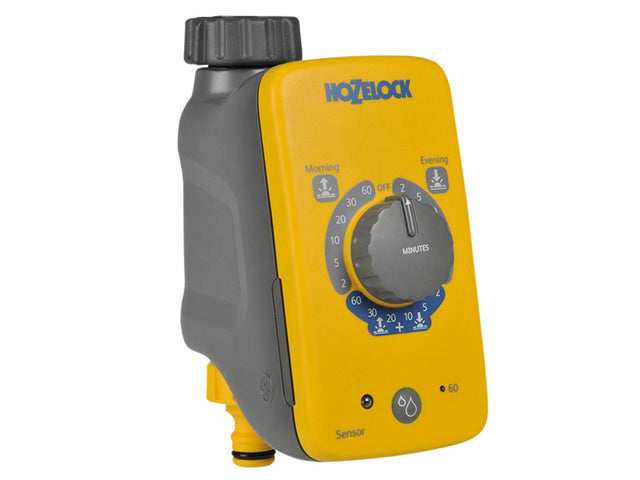 The Hozelock Sensor Controller is a tap-mounted watering controller which automatically waters every day at sunrise, sunset, or both - the best time to water the garden.