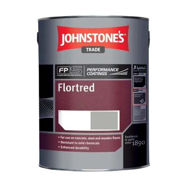 Johnstone's Trade Flortred is a solvent based semi-gloss coating which is resistant to mild chemicals, water, oil and grease. It is designed for use on concrete, steel and wooden floors, in light to medium traffic areas, as well as exterior use to highlight walkways, car park spaces and other markings.