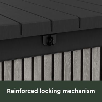 With UV protection and a reliable piston opening system, it offers convenient access and long-lasting durability. The box is also lockable for added security (lock not included), making it a practical and stylish storage solution for your outdoor needs.