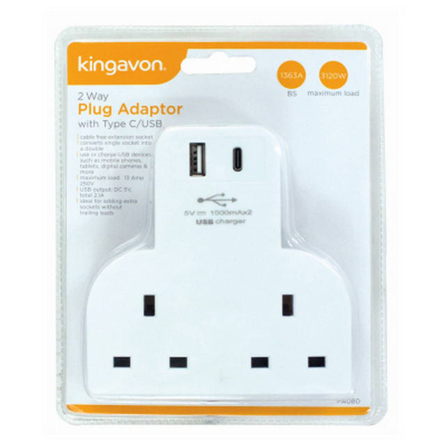 KINGAVON 2 WAY PLUG ADAPTOR WITH TYPE C/USB BB-PA080