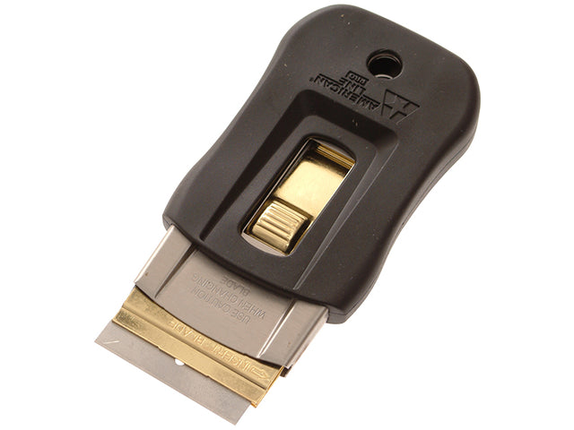 American Line 650004 metal window scraper with a retractable blade and comfortable rubber grip. An ideal tool for scraping or cleaning hard surfaces, removing labels, spills, paint, hob and oven cleaning etc. It is supplied with 5 blades and is carded.