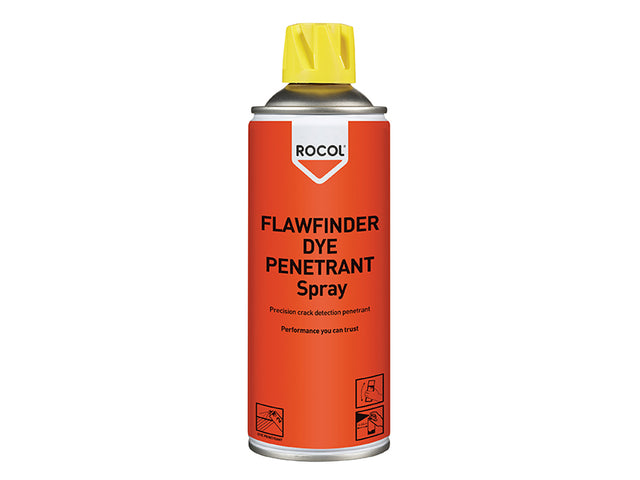 ROCOL FLAWFINDER DYE PENETRANT is an aerosol applied red dye which is designed to penetrate into the finest cracks and flaws to facilitate detection when used in conjunction with FLAWFINDER DEVELOPER and FLAWFINDER CLEANER Sprays. Water washable.