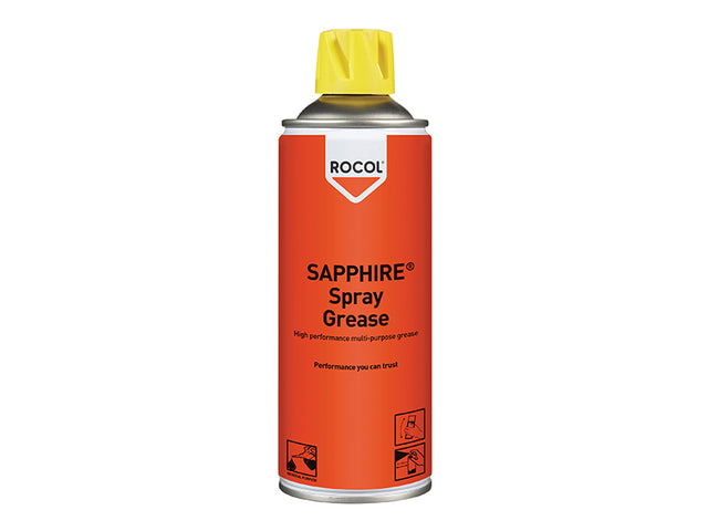 ROCOL SAPPHIRE® Spray Grease is an extreme pressure grease fortified with PTFE. Lithium complex soap technology and EP additives, including PTFE providing extreme load and wear resistance. PTFE content reduces stick-slip on start up ensuring smooth, controlled movement.