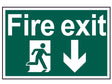 Scan Fire Exit Running Man Arrow Down - PVC Sign 300 x 200mm