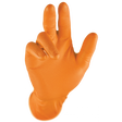 Size 09 Skin Glove in vibrant orange combines durability with comfort for demanding tasks. Designed to fit large hands, this glove offers excellent dexterity and a secure grip, making it ideal for precision work while providing reliable skin protection. Its bright color enhances visibility for added safety on the job.