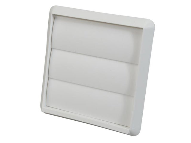 The Stadium 100mm, White, Terminal Flap Vent is made of plastic.