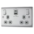 SWITCHED SOCKET C/W 2 X USB OUTLETS BRUSHED STEEL
