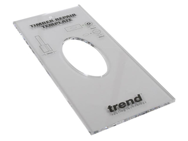 The Trend Template Timber Repair Kit is a unique product that allows oval pockets to be routed, to disguise ugly resin pockets and knots in timber. This is especially useful when softwoods are being used.