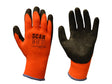 3 Pairs of Scan Orange/Black Knitshell Thermal Gloves. These high-visibility gloves have a black latex wrinkle finish coating to the palm and fingers. They give excellent grip in both wet and dry conditions. Ideal for the construction, automotive and handling industries.